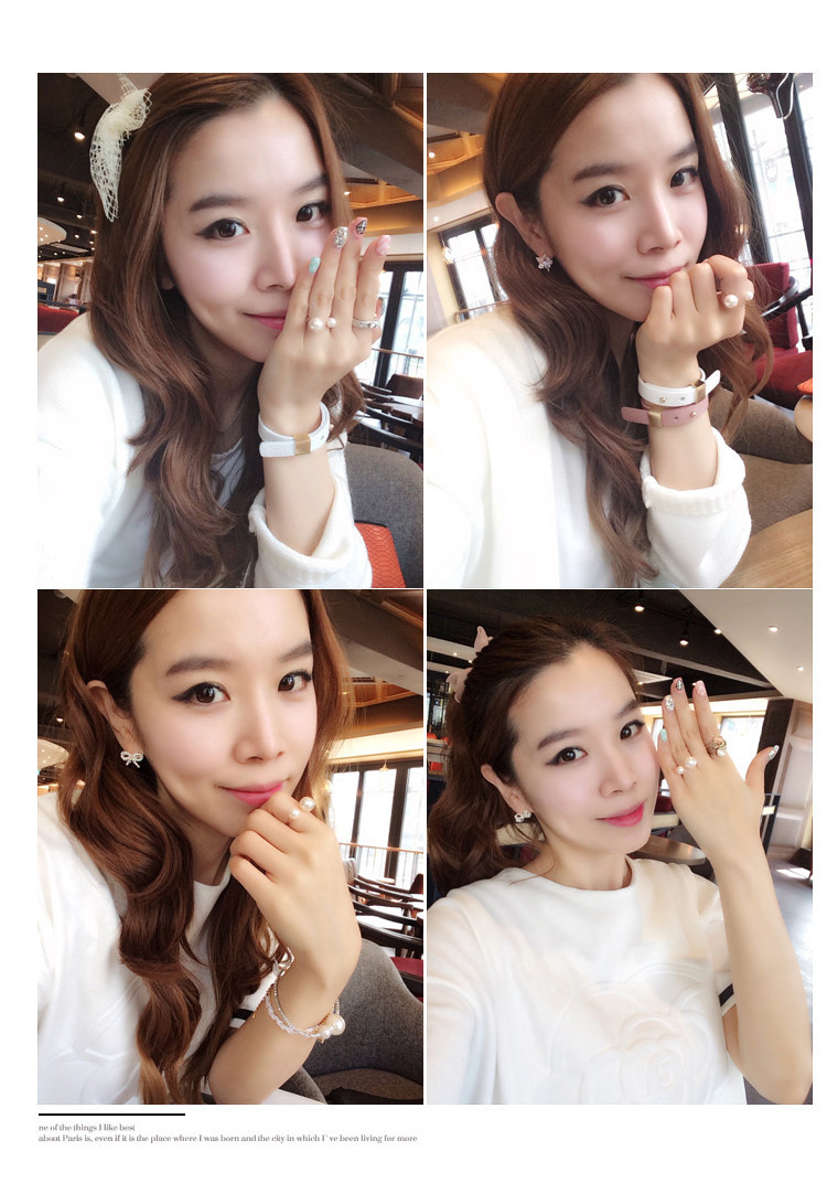 0656 Trang sức chính hãng Hàn Quốc Phong cách quý cô thanh lịch hình chữ U kích thước ngọc trai mở vòng điều chỉnh nhẫn vàng trắng nam Nhẫn