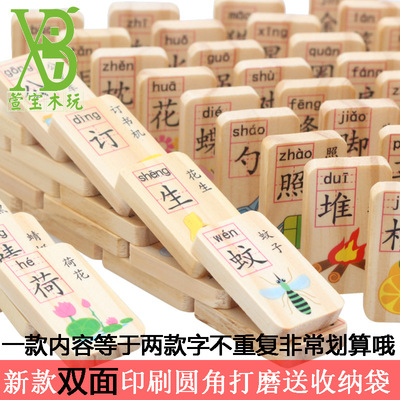 100 câu đố giáo dục sớm hai mặt domino khối gỗ đồ chơi trẻ em đồ chơi cho trẻ 2 tuổi Khối xây dựng