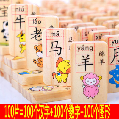 100 ký tự Trung Quốc Domino 3-6 tuổi giáo dục sớm biết chữ khối gỗ đồ chơi giáo dục trẻ em cửa hàng đồ chơi trẻ em gần đây