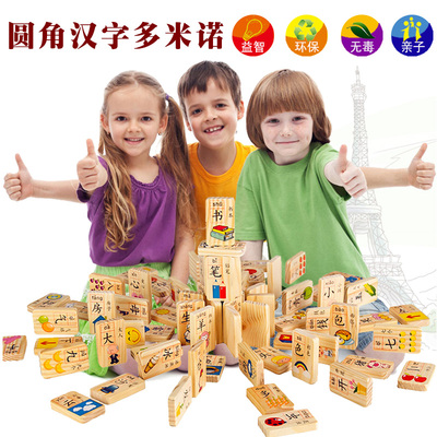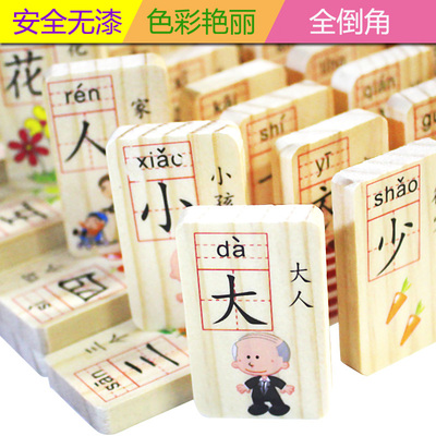 100 máy tính bảng chữ Hán Dominoes 1-3-6 tuổi bé nhận thức giáo dục sớm đồ chơi giáo dục khối gỗ bộ đồ chơi xếp hình bằng gỗ Khối xây dựng