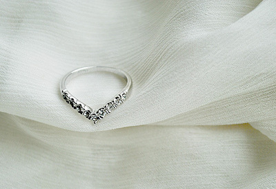 1385 Đồ trang sức tinh xảo của Hàn Quốc Thiết kế độc đáo hình chữ V nạm kim cương nhỏ ngón tay đeo nhẫn nhẫn cưới kim cương