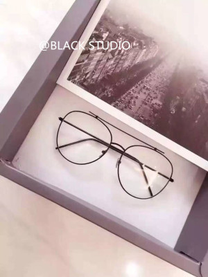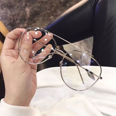 [13C] 17 thời trang mới Han Fan retro khung kim loại hoang dã kính lớn khung đôi chùm tia tròn mặt phẳng gương - Kính khung kính nam đẹp Kính khung