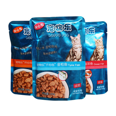 15 cái Pet mèo đồ ăn nhẹ Vật Nuôi hạnh phúc gói vào mèo 100 gam tuyệt vời tươi thịt gói mèo đóng hộp cám cho mèo Đồ ăn nhẹ cho mèo