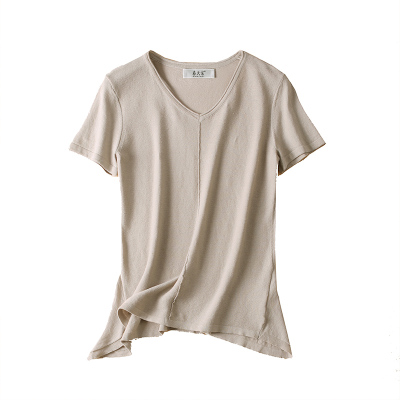 ¥ 168 giây! Cá tính chống giải trí và thoải mái V-Cổ slim linen ngắn tay áo len T-Shirt nữ S221 áo len cao cổ Áo / áo thun