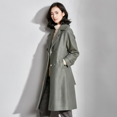 [168 nhân dân tệ] Van Gogh nhân viên bán hàng giải phóng mặt bằng coat phụ nữ 2017 mùa thu và mùa đông mới dây đai eo áo khoác mùa đông áo len áo dạ dài nữ đẹp Accentuated eo áo