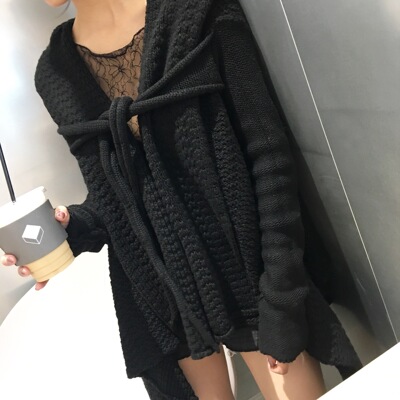 17 đầu mùa thu new wizard hat tối đen không thường xuyên tie big áo len cardigan tone loose áo khoác mỏng áo len thổ cẩm
