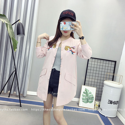 1764 áo gió 2018 phụ nữ mùa thu váy đẹp thêu đơn ngực thời trang hoang dã dài đồng phục bóng chày áo khoác lông nữ