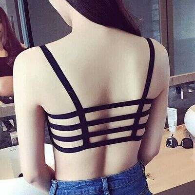 2 mảnh ~ đồ lót chéo gợi cảm quấn dây đeo ngực miếng đệm chống ánh sáng dưới cùng màu đen và trắng ống hàng đầu dây áo yếm nữ - Ống áo ngực hở lưng