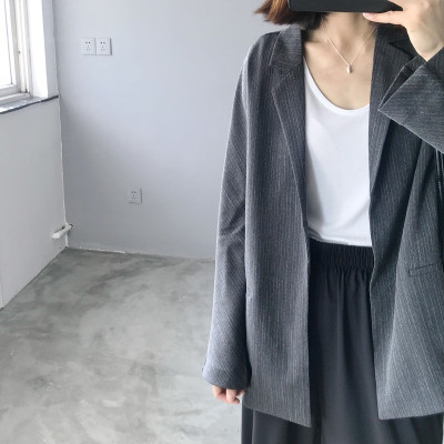 2 miếng! Bàn tay đưa ra đề nghị ~ Hàn Quốc in sọc dọc BF gió lỏng đường viền blazer bộ vest nữ hàn quốc Business Suit