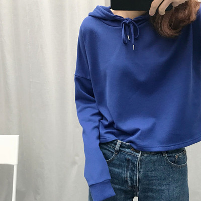 2 miếng! Tên trộm màu xanh sapphire này cháy năm nay, F nhà trắng sapphire xanh mui xe lỏng ngắn tay áo len phụ nữ áo nỉ hoodie dễ thương