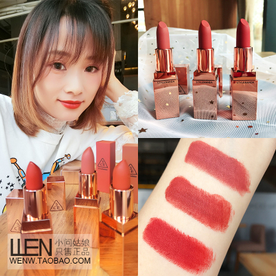 2 trừ 10 Hàn Quốc 3CE son môi vàng 226 227 228 vỏ vàng lá đậu đỏ dán son đỏ trắng - Son môi son bbia màu 12 Son môi
