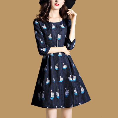 2017 mùa thu mới của phụ nữ khí chất váy hoa tay áo bảy điểm Một váy từ váy nữ A-Line Váy
