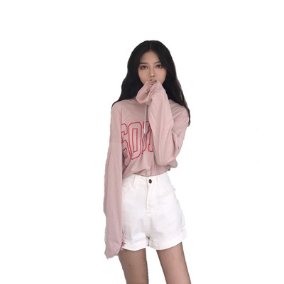 2017 mùa thu mới đại học Hàn Quốc gió lỏng hoang dã áo len in thư mỏng dài tay T-Shirt áo triều áo nỉ phong cách thể thao