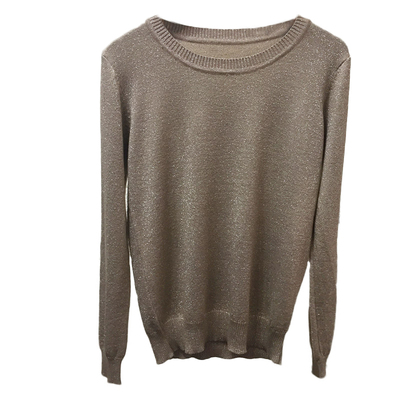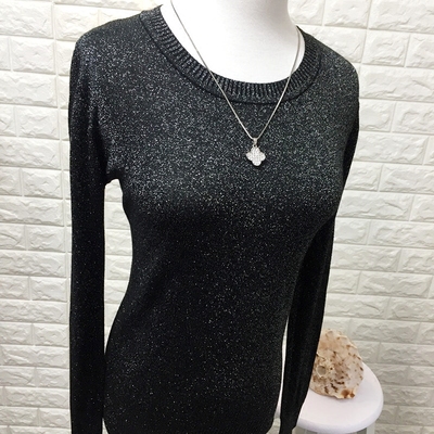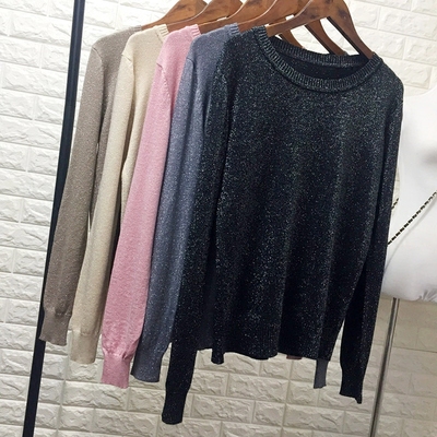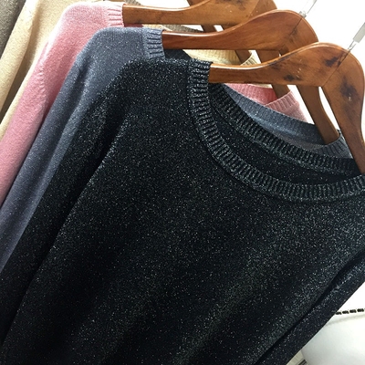 2017 mùa thu mới lụa sáng lụa dài tay cổ tròn phần mỏng áo len áo lụa bạc sáng đường kẻ đáy áo sơ mi nữ áo len cổ lọ form rộng Đan Cardigan