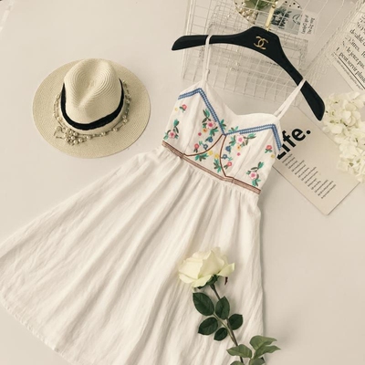 2018 Amoi Bohemian Phong Cách Quốc Gia Ngành Công Nghiệp Nặng Thêu Hoa V-Cổ Eo Cao A-Line Tutu Váy Ăn Mặc đầm xòe