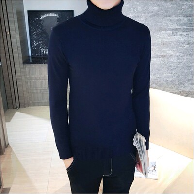 2018 Hàn Quốc Slim Solid màu dài tay áo cao cổ áo len Áo len trắng đáy quần bó sát mùa đông thời trang nam