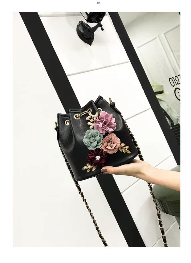 2018 hè mới túi nhỏ thời trang retro túi nữ dính hoa xô túi đeo chéo vai pu túi giản dị túi xách nữ đẹp Túi xách nữ