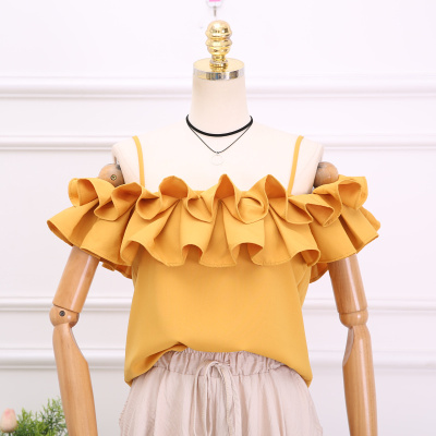 2018 khí mùa hè mỏng dây đeo vai băng tóc xù xếp li vô lý off-the-vai ngắn yếm trong top shop thời trang nữ Áo ba lỗ