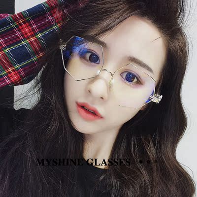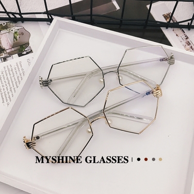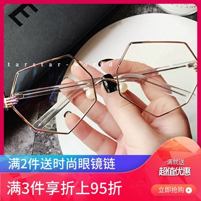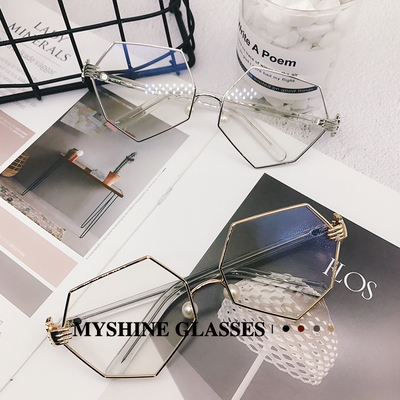 2018 lưới đỏ không đều phẳng gương bát giác cọ kính ngọc trai mũi hỗ trợ thủy triều khung mắt cận thị khung cận thị - Kính khung tròng kính