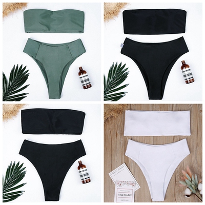 2018 mới châu Âu và Mỹ ống top bikini màu rắn hai mặt cao eo cao gợi cảm chia áo tắm bikini nhiều màu đồ bơi nữ 2 mảnh Bikinis