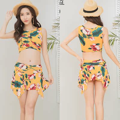 2018 mới chia áo tắm mặc bikini hai mảnh váy áo tắm phụ nữ phẳng góc bảo thủ giảm béo mùa xuân nóng bikini 2 mảnh màu trắng