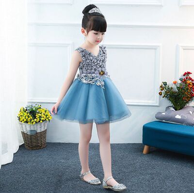 2018 mới cho bé gái thời trang Hàn Quốc mùa hè màu xanh trang phục trẻ em trang phục công chúa váy dạ hội bé gái thời trang trẻ em