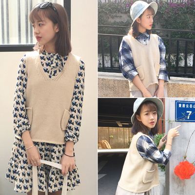 2018 mới của Hàn Quốc phiên bản của các trường đại học gió lỏng V-Cổ vest vest áo len mùa thu đoạn ngắn áo thun áo len của phụ nữ triều váy nữ Áo vest