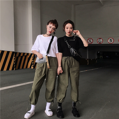 2018 mới của Hàn Quốc phiên bản của ngắn lỏng ngắn tay T-Shirt + chín điểm feet harem quần hai bộ của phụ nữ thời trang phù hợp với mùa hè đầm nữ