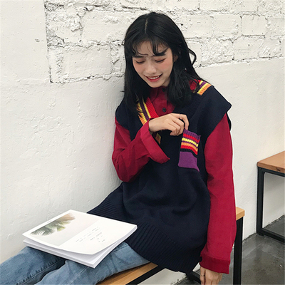 2018 mới của phụ nữ sinh viên cao đẳng gió lỏng V-Cổ knit vest áo len vest ngắn Hàn Quốc phiên bản của chic mùa xuân áo phao lông vũ nữ Áo vest