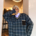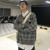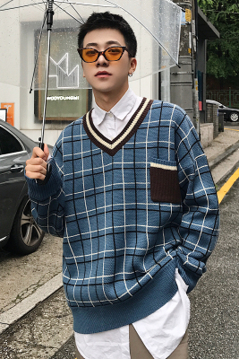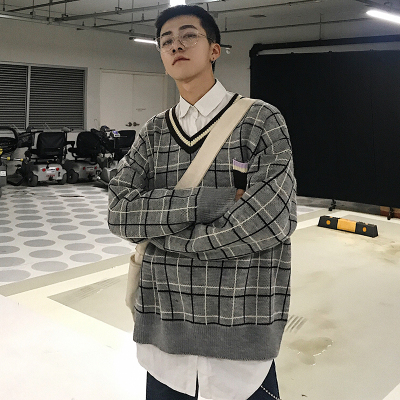 2018 mới kẻ sọc retro áo len lỏng cổ chữ V xu hướng nam phiên bản Hàn Quốc của áo len xu hướng xu hướng thu đông áo nam đẹp