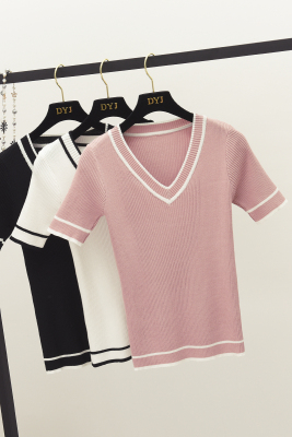 2018 mới mùa hè băng lụa áo len nữ chic sinh viên màu hồng ngọt ngào ngắn tay T-Shirt phần mỏng Slim áo sơ mi khoác cardigan Đan Cardigan