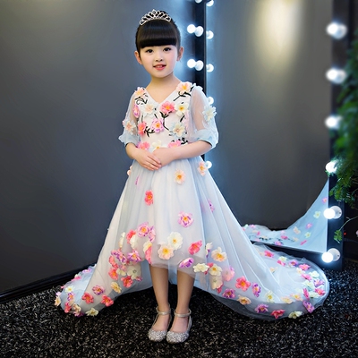 2018 mới mùa thu và mùa đông hoa cô gái váy trẻ em váy công chúa hoa cổ tích trang phục biểu diễn piano váy ren đẹp nhất cho bé gái