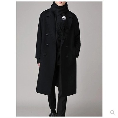 2018 mới mùa thu và mùa đông quần áo nam thanh niên áo len dài màu đen len trên đầu gối cashmere 61 áo măng tô dạ nam cao cấp