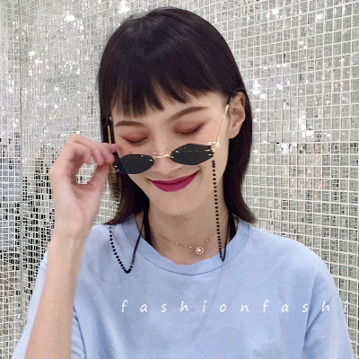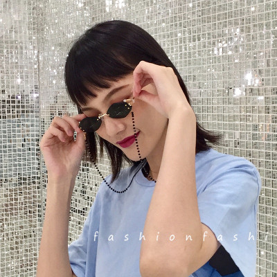 2018 mới thủy triều hip-hop retro Châu Âu và Mỹ avant-gardene ống kính nhỏ kim cương không khung kính râm gọng kính cận nữ đẹp