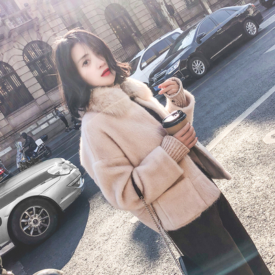 2018 mùa đông Hàn Quốc phiên bản của nhung vàng chic áo len nhỏ của phụ nữ phần ngắn Sen áo len lông cổ áo áo khoác nữ mùa đông