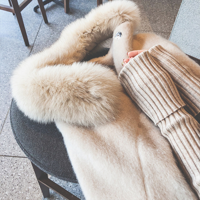 2018 mùa đông Hàn Quốc phiên bản của nhung vàng chic áo len nhỏ của phụ nữ phần ngắn Sen áo len lông cổ áo áo khoác nữ mùa đông Áo khoác ngắn