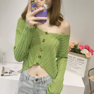2018 mùa hè mới Hàn Quốc cao đẳng gió đơn ngực dài- tay mỏng v- cổ màu rắn hoang dã đan chiếc áo đan len phụ nữ áo cardigan nữ dáng dài Cardigan