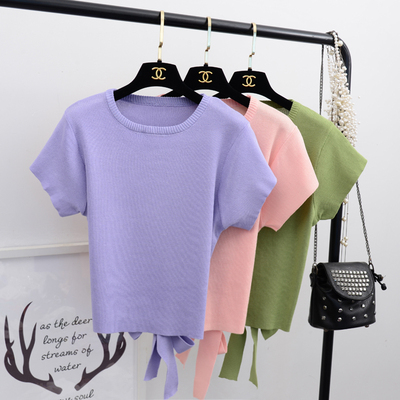 2018 mùa hè mới ins siêu lửa cẩn thận áo khoác hàng đầu với thời trang đan ngắn tay T-Shirt nữ lỏng lẻo hoang dã áo len dáng dài Áo / áo thun