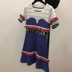2018 mùa hè mới lá sen tay áo ngắn tay áo xếp li sọc váy cầu vồng đan màu phù hợp với thư một từ ăn mặc váy xòe xếp ly