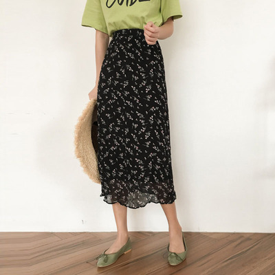 2018 mùa hè mới voan breathable khí thanh lịch giảm béo tuổi đơn giản floral pattern in váy phụ nữ chân váy vintage hoa nhí