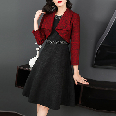 2018 mùa thu mới của Hàn Quốc thời trang áo len kẻ sọc hai mảnh Áo len mỏng Váy đầm hoa thời trang nữ cao cấp A-Line Váy