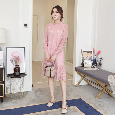 2018 mùa thu mới Hàn Quốc tính khí đầm ren trong đoạn dài lỏng dài- tay siêu cổ tích lá sen một từ váy váy chữ a A-Line Váy