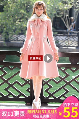 2018 mùa thu và mùa đông mới thêu len coat coat ngọt tính khí eo là mỏng trong phần dài fur collar coat phụ nữ áo dạ nữ ngắn Accentuated eo áo