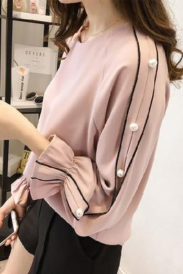 2018 mùa thu và mùa đông phụ nữ Hàn Quốc phiên bản của bộ cơ sở mới của kích thước lớn lỏng áo sơ mi thời trang đính cườm sừng dài tay áo sơ mi áo sơ mi dáng dài nữ tay lỡ