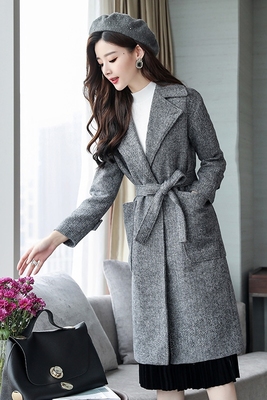 2018 mùa thu và mùa đông quần áo thời trang xương cá mẫu áo Hàn Quốc phiên bản của eo là mỏng trên đầu gối phần dài ladies len áo triều áo dạ đẹp mùa đông 2020