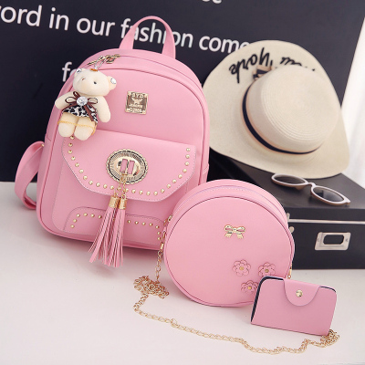 2018 mùa xuân mới đinh tán ba mảnh mẹ- con ba lô nhỏ màu hồng công chúa cô gái ba lô tua túi thời trang balo đi học nam Ba lô