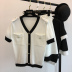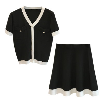 2018 mùa xuân mới Han Fan woman máy cẩn thận hit màu đen và trắng knit top + cao eo váy phù hợp với kiểu đồ bộ Bộ đồ