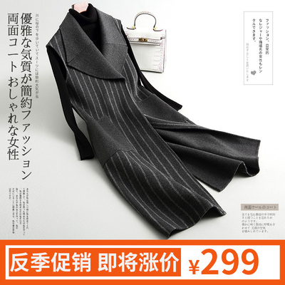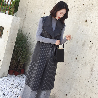 2018 mùa xuân mới nữ hai mặt cashmere áo len dài vest len ​​kẻ sọc không tay áo gi lê măng tô nữ