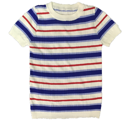 2018 mùa xuân và mùa hè mới Hàn Quốc phiên bản của tự canh tác tương phản màu sọc vòng cổ ngắn tay T-Shirt của phụ nữ hoang dã knit đáy áo cardigan nữ