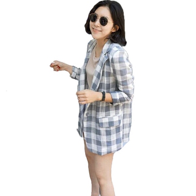 2018 mùa xuân và mùa thu mới chất liệu linen nhỏ phù hợp với phụ nữ kẻ sọc áo mỏng Hàn Quốc phiên bản của phần dài là mỏng cotton và linen phù hợp với áo vest nữ không cổ Business Suit